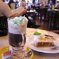 思えば、明日はもう帰る日…。「はっ!そういえば、まだチェコ料理を食べていない!」一人でレストランに入るのは、勇気がいるんだけど、遥々チェコまでやってきて心残りを残したくない〜!チャンスは、今晩しかない。ガイドブックでチェコ料理が食べられるお店を探して、えいやっ!と足を踏み入れたのが『レストラン・ムハ』(※右写真)。入ってみると、客は一人もおらず…。そして、ハイソな雰囲気の中、言葉の通じない東洋人の私…。う、場違いな所へ来ちゃった…〈涙〉。とにかく、“クネドリーキ”(←蒸しパンのようなチェコ独自の付け合わせ)付き肉料理とBeerを食べて、何とか出るしかない!緊張した中、出てきた料理“ムハ・プレート”は、私の描いていたチェコ料理そのものだった☆ 「お〜っこれがクネドリーキとやらかっ」。このプレートは、3種類の肉料理と3種類のクネドリーキ&付け合わせとボリューム満点! しかし、緊張のあまり、せっかくの料理を写真を撮るのを忘れてしまいました…。おいしかったけど、ご飯って人と一緒に食べるほうが絶対美味しいなって思った。一人旅もいいけど、ご飯は誰かと食べたいな〜。 |